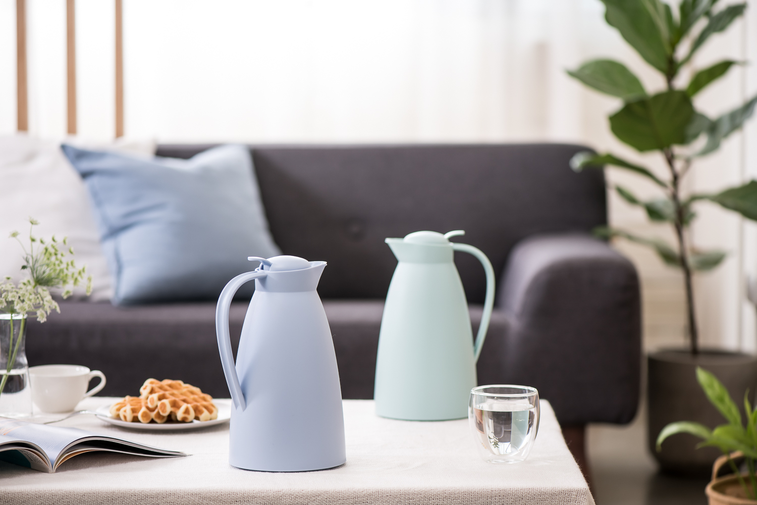 設計師:Martin Hauenstein 強化塑料,表面磨砂處理 alfiDur 真空強化玻璃內膽 保溫12小時,保冷24小時 按壓式壺蓋,單手操作設計 方便傾倒設計,操作簡單 真空本體保固5年